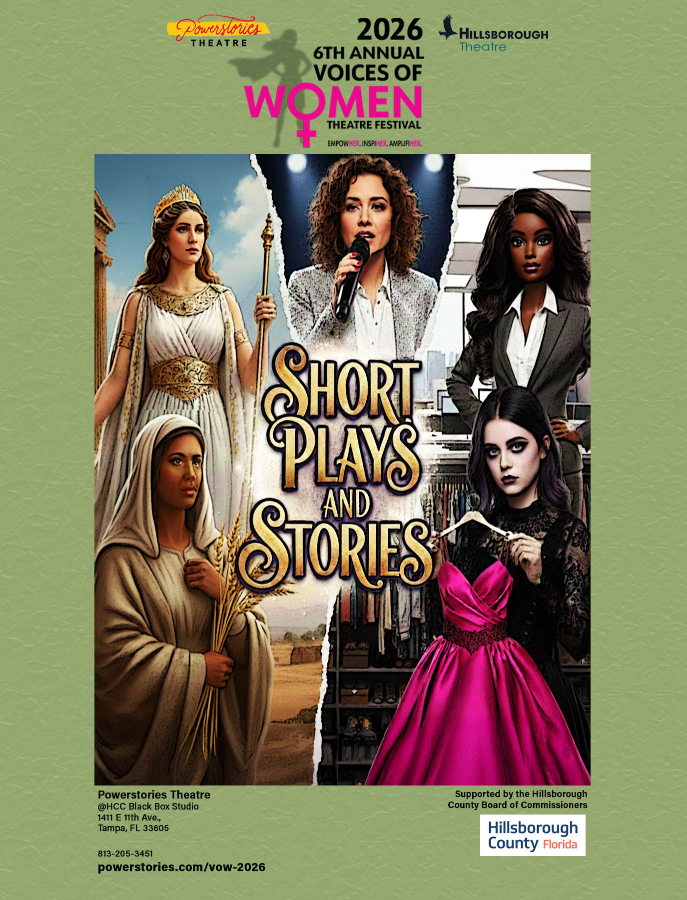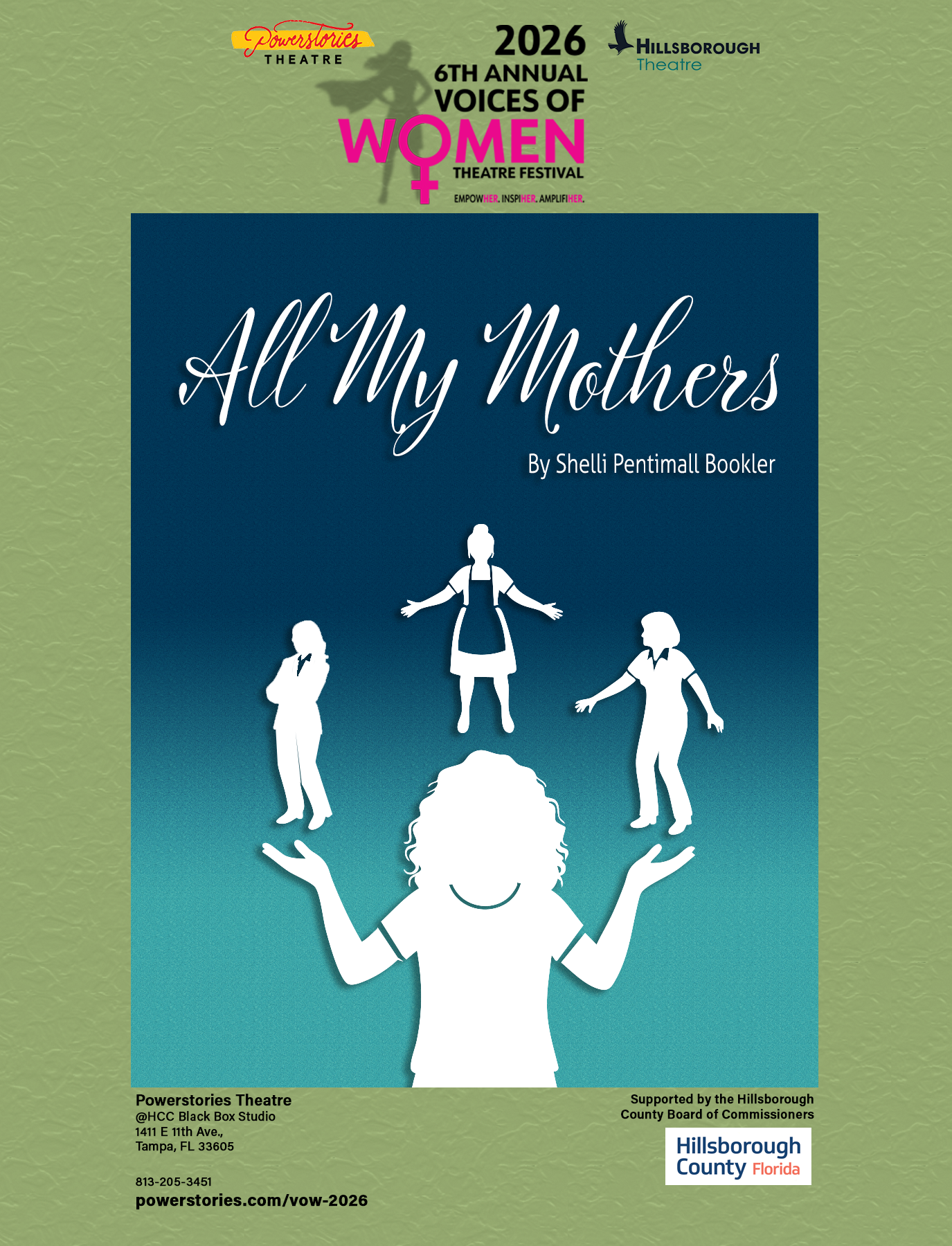 Now in its 6th year, the Voices of Women Theatre Festival continues its proud tradition of amplifying women’s stories and perspectives on stage in proud partnership with Hillsborough Theatre. This season features full‑length plays in both the General category and the Playwrights Over 40 category, along with a slate of 10‑minute short plays that deliver powerful storytelling in concentrated form.